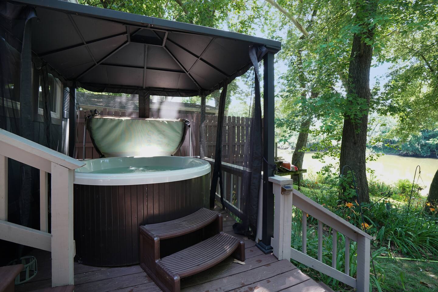 KAYAK USE POLICY: Guests are welcome to use the kayaks provided during their stay at their own risk, as long as river levels remain at or below 6 feet. Life Jackets must be worn at ALL TIMES. For safety reasons, when the river level exceeds 6 feet, access to the river will be restricted and the kayaks will not be available for use. Elevated river levels create strong currents and hazardous conditions that make kayaking unsafe. We appreciate your understanding and ask that all guests prioritize safety while enjoying the river. HOT TUB: Guests are welcome to enjoy the hot tub, which comfortably seats up to 5 people. Use is at your own risk, and we kindly ask that you follow all posted instructions and safety guidelines. For everyone’s comfort and safety, please: Shower before entering to help keep the water clean Do not add any soaps, oils, or chemicals Turn off all jets after use Always close and secure the cover when you're finished Thank you for helping us maintain a clean and relaxing space for all guests!