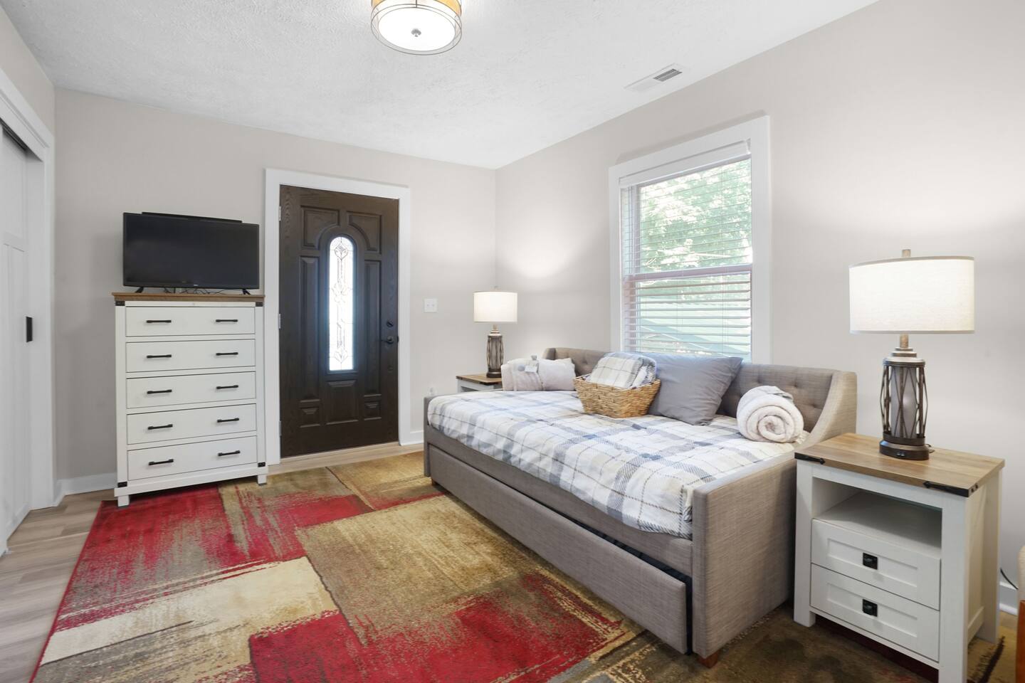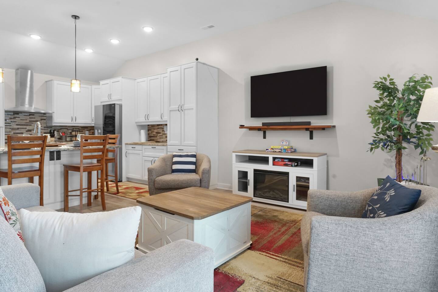 🛏 Sleeping Arrangements This home features 3 comfortable bedrooms and additional sleeping options to accommodate up to 10 guests: Bedroom 1: King bed + pull-out sleeper sofa Bedroom 2: Queen bed Bedroom 3: Full bed + pull-out trundle bed Living Room: Pull-out sleeper sofa All beds are made with fresh linens and extra blankets and pillows are provided for your comfort. 🍽️ Kitchen Details Fully equipped with cookware, utensils, and dinnerware Coffee maker (with starter pods/grounds) Dishwasher with detergent provided Please help by running the dishwasher before checkout 🗺️ Nearby Attractions 🛍 Keystone at the Crossing & The Fashion Mall (5 minutes) High-end shopping, luxury brands, and great dining options all in one place. 🍽 Broad Ripple Village (10 minutes) Trendy area with lively nightlife, local restaurants, breweries, coffee shops, and a scenic riverwalk. 🚴 Monon Trail Access (5 minutes) Perfect for biking, walking, or running—this popular trail runs through Broad Ripple and connects to Carmel and Downtown Indy. 🏟 Downtown Indianapolis (20 minutes) Home to Lucas Oil Stadium, Gainbridge Fieldhouse, the Indianapolis Zoo, White River State Park, museums, and more. ⚽ Grand Park Sports Campus – Westfield (25–30 minutes) A massive youth sports complex hosting soccer, baseball, and other tournaments year-round. Ideal for families traveling for sporting events.