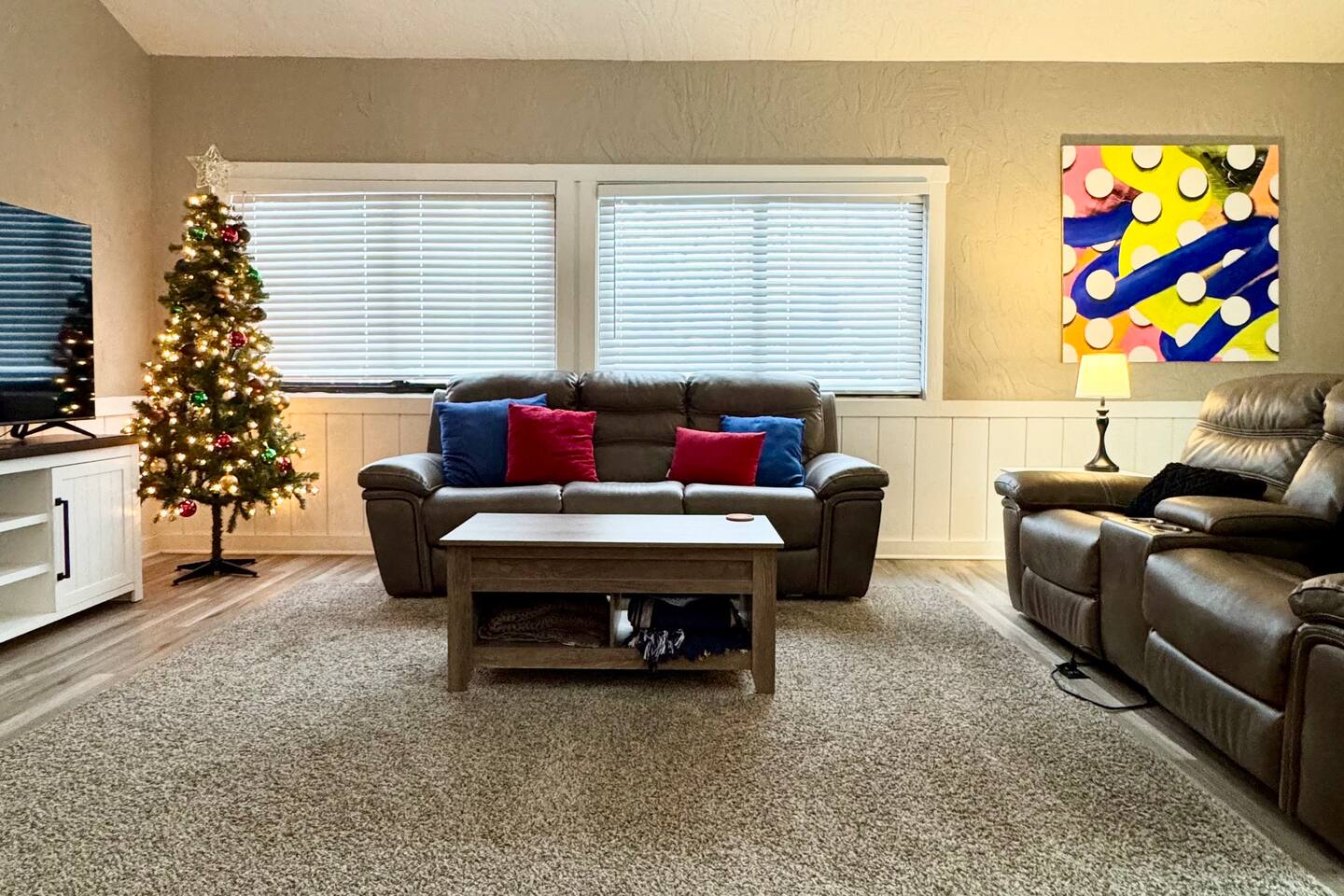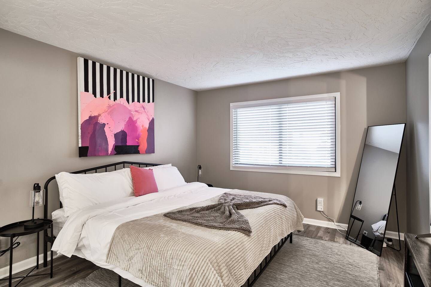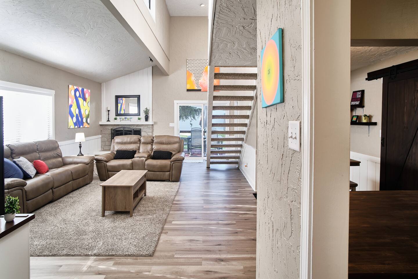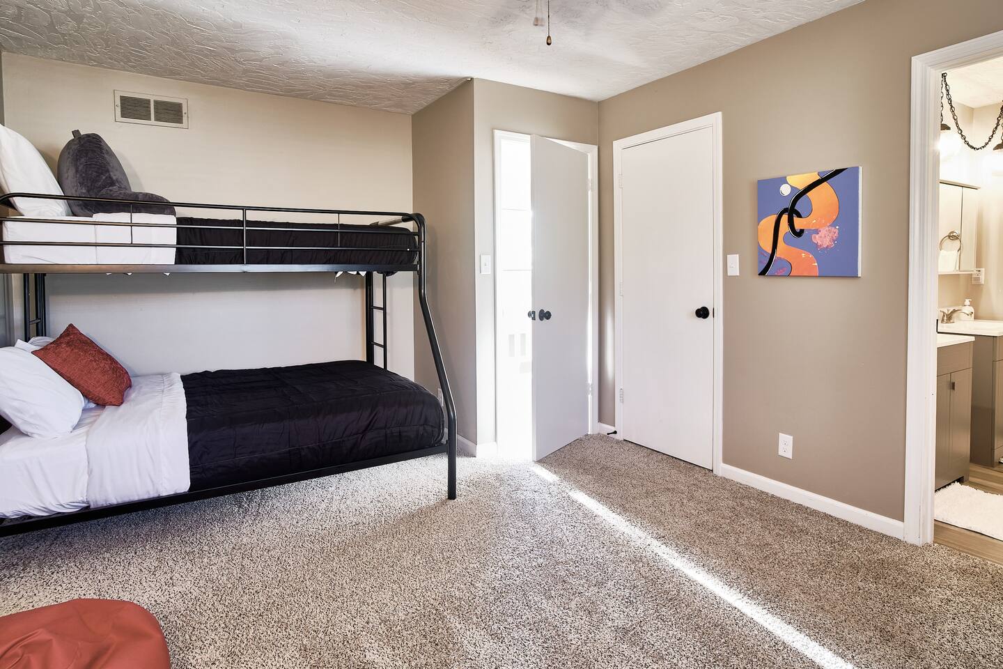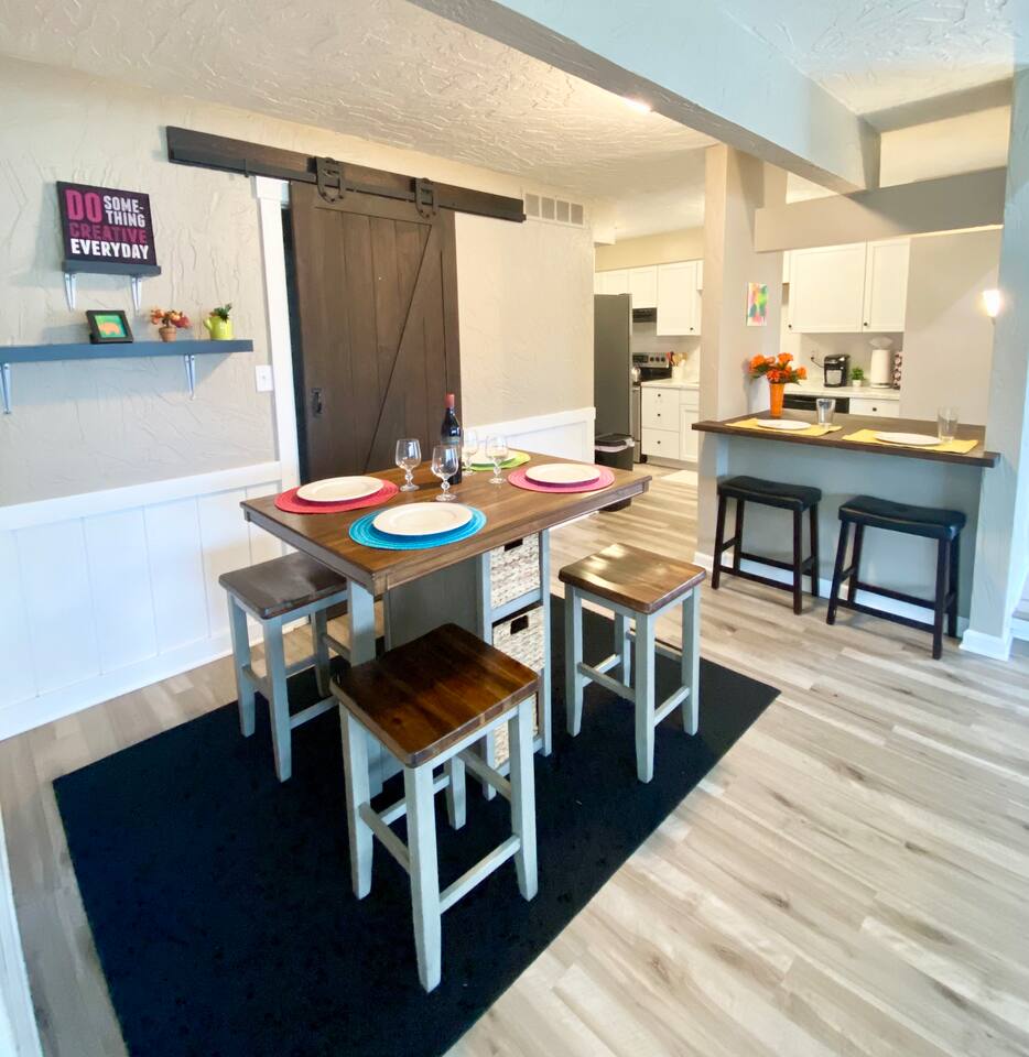 đ¨ The Artsy Abode â Family-Friendly Comfort in the Heart of Fishers! Welcome to your vibrant home away from home, where comfort meets creativity! This newly renovated and artfully styled retreat showcases original works by local artist Riley Sims, all available for purchase during your stay. đď¸ Bedrooms & Sleeping Arrangements Bedroom 1: King bed, main-level master with Smart TV Bedroom 2: Queen bed with Smart TV Bedroom 3: Twin-over-full bunk bed with Smart TV Additional: Queen air mattress available upon request Sleeps 7â9 guests comfortably đ Bathrooms Two full bathrooms: one with a tub/shower combo, one with a walk-in shower đł Kitchen & Dining A modern, well-equipped kitchen with a brand-new refrigerator, Keurig & drip coffee makers, and everything you need to cook at home. Laundry room includes an LG washer/dryer tower for convenience. đď¸ Living & Entertainment Relax in the cozy living room with a leather reclining sofa and loveseat, and a 65â Smart TV. Have fun with the arcade game, foosball table, and board gamesâperfect for family nights! The garage includes an extra fridge, coolers, a TV with local channels, and folding chairs for flexible use. đ¨ Local Art On Display Art throughout the home is by Fishers-based artist Riley Sims and available for purchase. đ Location Highlights Centrally located near some of Fishersâ top attractions: Top Golf â 9 min Fishers Event Center â 9 min Conner Prairie â 5 min IKEA â 9 min Ruoff Music Center â 16 min Hamilton Town Center â 15 min Grand Park Sports Campus â 24 min Enjoy walkable access to Nickel Plate District, with boutiques, coffee shops, local dining, and Holland Park just minutes away. đŹ What Guests Love â âSpotless, cozy, and full of thoughtful touches. The art is incredible!â â âPerfect for familiesâfelt like a home away from home.â â âStylish, comfortable, and an unbeatable location.â đ˝ď¸ Local Dining Favorites Roost â Coffee cake & hash brown casserole Chatham Tap â Famous Angel Wings & fish and chips Parkâs Place Pub â Great wraps, burgers, and tenderloins Bento CafĂŠ â Sushi & pork gyoza Rockstone Pizza â Cozy pizza spot nearby Ale Emporium â Deep dish pizza, wings, and the best breadsticks in town Experience art, comfort, and convenienceâall in one stay. Whether youâre here for family fun, a weekend getaway, or a local event, the Artsy Abode offers the perfect Fishers retreat!