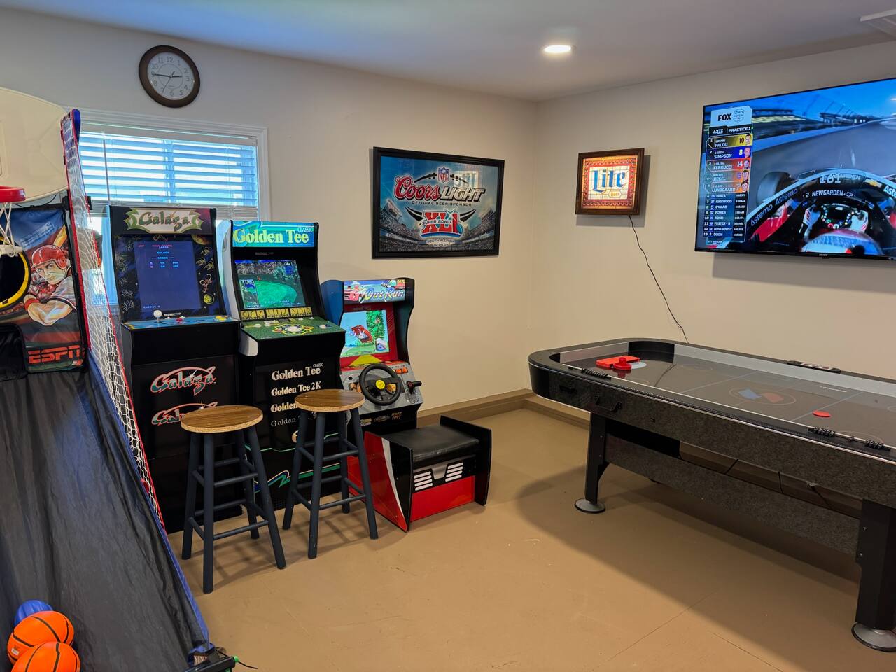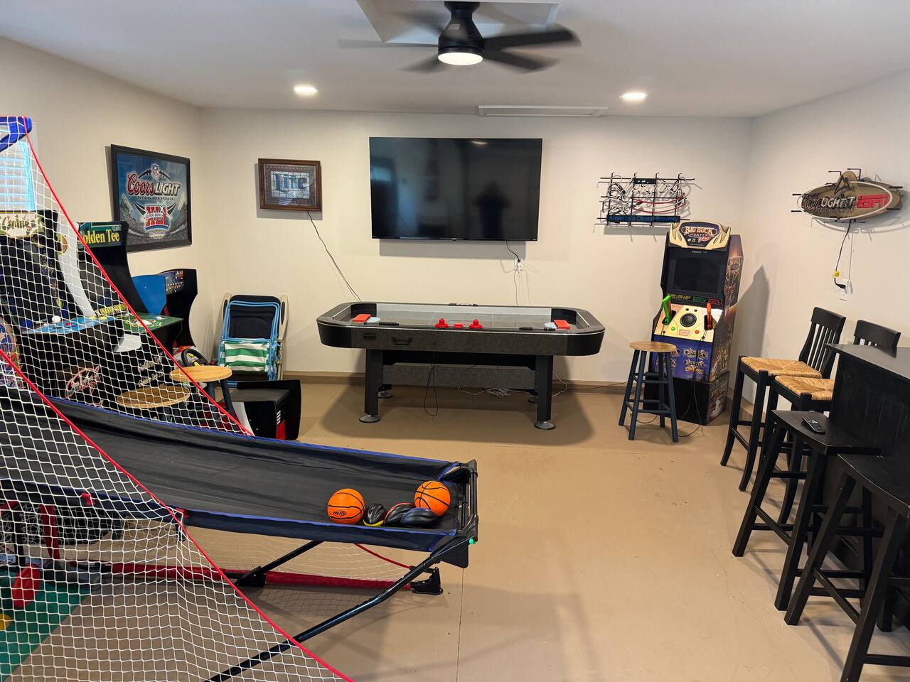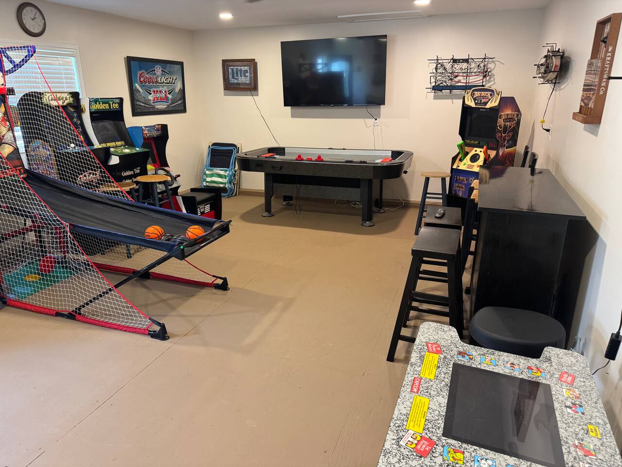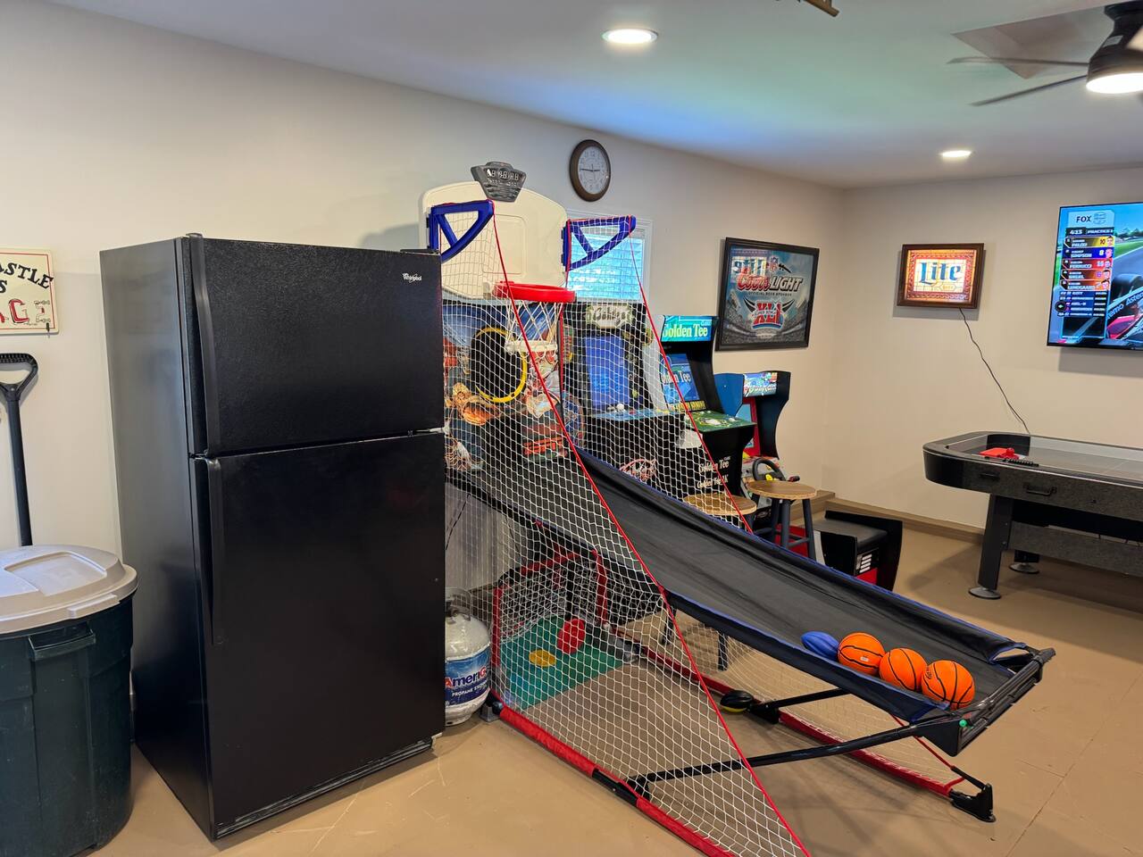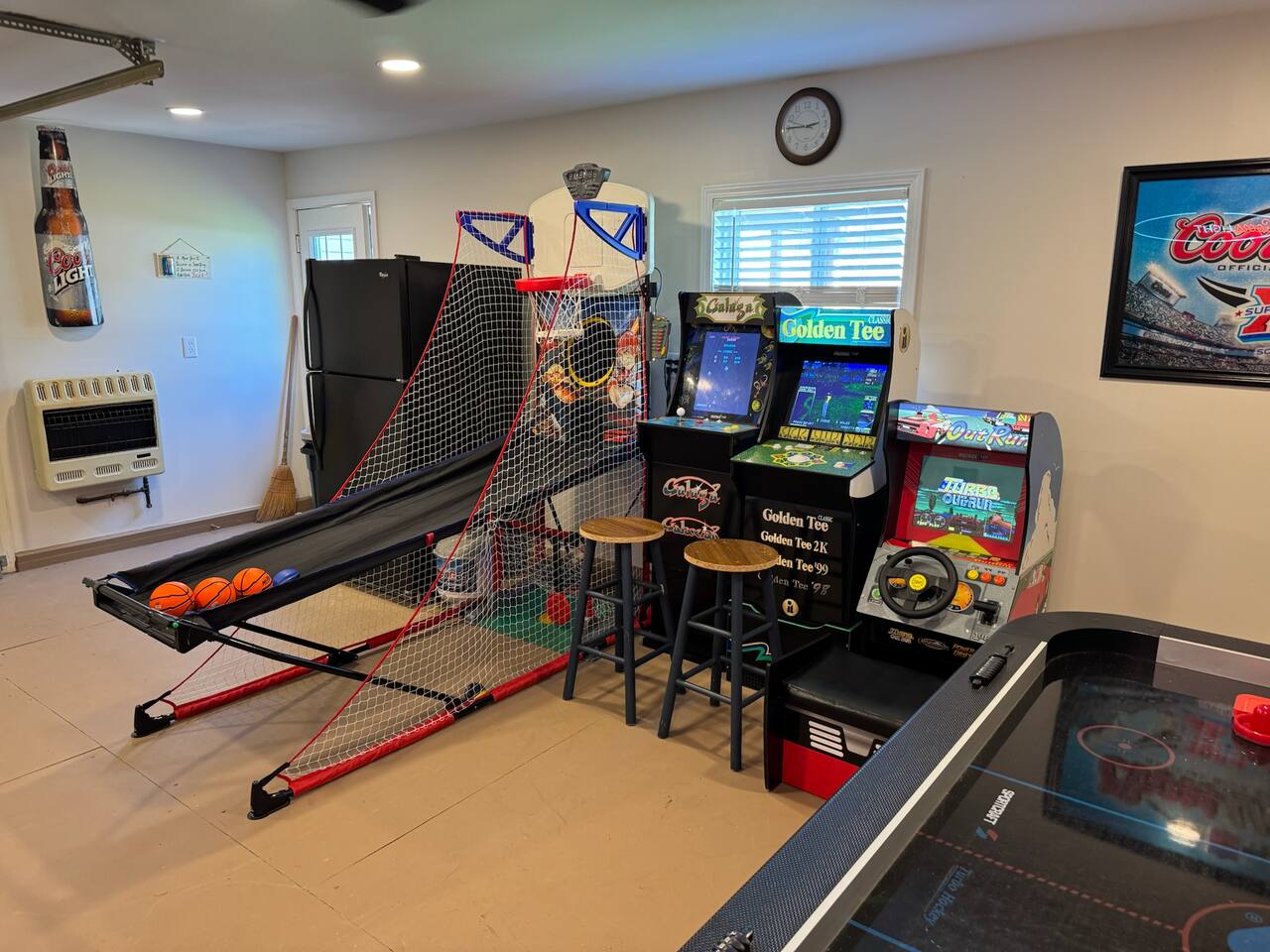 Detached garage Game room with Smart TV, bar, refrigerator, air hockey and arcade games!