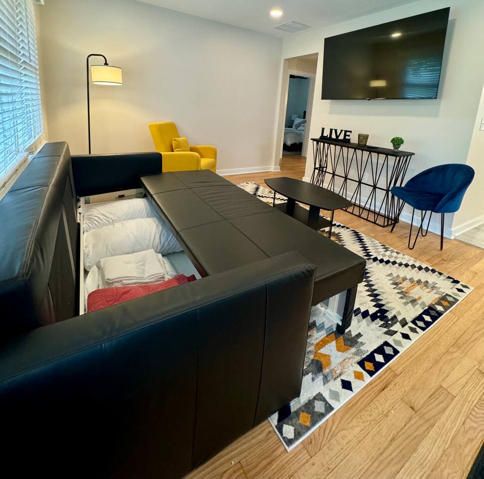 Welcome to The Fortville Flat – Your Perfect Home Away from Home! Escape to charming small-town Indiana while enjoying all the comforts of modern living at The Fortville Flat. This fully updated 2-bedroom, 1-bath home sleeps up to 6 guests, making it perfect for weekend getaways, family stays, business trips, or extended visits. Situated just a short walk from downtown Fortville, you’ll discover delightful local shops, unique eateries, and welcoming community vibes right at your doorstep. Whether you’re here for relaxation or exploration, this centrally located retreat is your ideal base. Comfortable & Thoughtful Living Spaces Step into a bright and inviting living area designed for rest and connection. The open layout flows seamlessly into the fully equipped kitchen — perfect for preparing meals or morning coffee before heading out to explore. King bedroom — spacious and restful Queen bedroom — cozy and comfortable Sleeper sofa in the living room — extra sleeping space for friends or family members Every detail has been carefully considered to make your stay comfortable, from plush bedding to thoughtful amenities like fast Wi-Fi and free parking. Fun & Entertainment Ready for a little fun? Head out to the detached garage game room, where you’ll find a Smart TV, game bar, refrigerator, air hockey, and arcade games — perfect for entertaining kids or gathering with friends after a day of adventure. Great for All Types of Travelers Whether you’re: Enjoying a family vacation Hosting out-of-town guests In town for events or sports Working remotely and craving a change of scenery …The Fortville Flat delivers comfort, convenience, and the perfect blend of small-town charm and modern perks. Explore Fortville & Beyond Fortville’s historic downtown is an easy stroll away, where you can browse local shops and dine at friendly restaurants. Venture a bit further and discover nearby parks, scenic trails, and attractions in the greater Hamilton County area — including quick access to Indianapolis for dining, entertainment, and culture. Come experience the best of Fortville hospitality — book your stay at The Fortville Flat today!